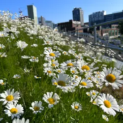 Le Pré Fleuri est un nouveau produit en constante évolution qui est composé de graminées et de fleurs sauvages qui auront une hauteur d'environ 3 pi une fois à maturité. Nous recommandons habituellement une fauche par saison.